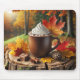 Heiße Schokolade im Herbst auf Baumstumpf Mousepad