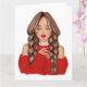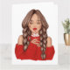 Heiße Schokolade im Winter im Roten Pullover trink Karte