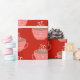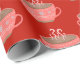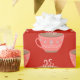 Heiße Schokolade Weihnachtsbecher auf hellrot Geschenkpapier
