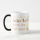Heißer Kaffee wird in einigen Sprachen angekündigt. Dargestellt hier auf der verwandelnden Tasse. Die Tasse ist schwarz, bis Sie Ihr heißes Getränk in es einsetzen, also Sie sagen können, wie lang Ihr Kaffee wirklich heiß ist.