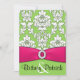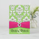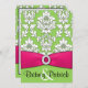 Heißes Rosa u. Limone grüne Damast-Hochzeits-Einladungen---bringen Sie die UAWG-Karten zusammen und mehr fanden unten auf dieser Seite. Jede Einladung kennzeichnet einen Druckdekorativen Bogen des Pinks mit einer Diamant getrimmten Schnalle über einem grünen und weißen Blumendamastdruck. Diese Hochzeitseinladungen sind Set zum hochwertigen grundlegenden Kartenvorrat; jedoch können Sie den Vorrat zum Leinen, der Filz ändern (geprägt), gerecycelt, und einige metallische Schatten, wenn Sie unter Nr. 2 möchten (wählen Ihre Art, Größe u. Papiersorte) unter der Orange hinzufügen Wagenknopf. Eine Liste der zusätzlichen Kosten für einen fantastischeren Kartenvorrat werden auch unter dieser Wahl angezeigt. Jede Einladung kommt mit einem angepassten weißen Umschlag.