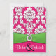 Heißes Rosa u. Limone grüne Damast-Hochzeits-Einladungen---bringen Sie die UAWG-Karten zusammen und mehr fanden unten auf dieser Seite. Jede Einladung kennzeichnet einen Limonen grünen dekorativen Druckbogen mit einer Diamant getrimmten Schnalle über einem heißen Rosa- und weißenblumendamastdruck. Diese Hochzeitseinladungen sind Set zum hochwertigen grundlegenden Kartenvorrat; jedoch können Sie den Vorrat zum Leinen, der Filz ändern (geprägt), gerecycelt, und einige metallische Schatten, wenn Sie unter Nr. 2 möchten (wählen Ihre Art, Größe u. Papiersorte) unter der Orange hinzufügen Wagenknopf. Eine Liste der zusätzlichen Kosten für einen fantastischeren Kartenvorrat werden auch unter dieser Wahl angezeigt. Jede Einladung kommt mit einem angepassten weißen Umschlag.