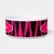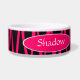 Geben Sie Ihrem Haustier einen modernen Rand mit diesem coolen striped Teller des schwarzen und heißen Rosas Zebra Nahrungsmittel! Pet Tellereigenschaften ein Schwarzes und Pink Zebrastreifenmuster ganz herum mit einem ovalen Bereich des Pinks mit weißer Ordnung auf jeder Seite. Innerhalb jedes Ovals ist Text im weißen mit Ihrem Haustiernamen besonders angefertigt zu werden Schriftart.