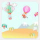 Heißluftballon auf pastellfarbenem Hintergrund. Quadratischer Aufkleber