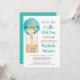 Einfache Baby Boy Dusche Einladung mit einer niedlichen Aquarellbilder einer Giraffe in einem aquamarinen Heißluftballon und "Up, Up & Away, A Little Wild One is On Your Way" und dem Namen der zukünftigen Mutter in einem lustigen aquamarinen Drehbuch. Sie können individuell festlegen, ob die Dusche für einen kleinen Jungen oder ein kleines Mädchen bestimmt ist, die Duschdetails und der Text auf dem Ballonkorb (z.B. "It's a Boy!" oder der Name des Babys).