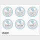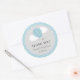Rundaufkleber für Brautparty Gefallen mit blauem Heißluftballon Design und Punkt Hintergrund.