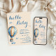 Mit dieser charmanten Hot Air Balloon Baby Shower Einladung feiern Sie die bevorstehende Ankunft eines kleinen Freudenbündels. Mit einem skurrilen Aquarelldesign eines Teddybären, der in einem sanft blauen und orangefarbenen Ballon schwebt, flauschigen Wolken und eleganter Typografie, ist diese Einladung ein Set für eine fröhliche und herzliche Feier. Ob Sie eine gemütliche Ansammlung oder eine lebendige Babydusche planen, dieses Design verleiht Ihnen eine Touch von Süße und Eleganz. Personalisieren Sie es mühelos mit Ihren Veranstaltungsdetails und machen Sie Ihre Einladung zu einem einzigartigen Erlebnis. Ideal für : Babyduschen, geschlechtsneutrale Themen oder für alle, die eine traumhafte, strahlend inspirierte Dekoration Liebe haben. lass Ihren Gästen zu wissen, dass sie für einen besonderen Tag die Feier mit Stil starten.