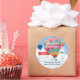 Mit diesem lustigen Aufkleber mit Heißluftballons, die in einem blauen Himmel vor einer flauschigen weißen Wolke schweben, geht es hoch, hoch und weg. Die Veranstaltung druckt auf dem farbenfrohen Ballon mit einem Flugzeug, das dahinter fliegt, und einem roten Banner mit einem Datum oder einem anderen Text, der darauf gedruckt ist. Ideal für Geburtstagsfeiern oder besondere Ballonveranstaltungen, um als Umschlag Aufkleber oder Siegeltaschen zu verwenden. Verfügbar mit passenden Produkten. com