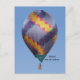 Dieser Heißluftballon heißt Twisted. Die hellen lila und gelben Drehungen und Zickzack sind hier auf himmelblauem Hintergrund zu sehen.