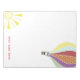 Ein Notizblock mit einer Retro-inspirierten Abbildung eines Heißluftballons oben rechts und unten links. Personalisieren Sie Ihren Namen ganz unten.