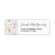 Adressetiketten mit einem niedlichen und skurrilen Muster. Heißluftballons und niedliche Wolken mit Gesichtern zwischen Sternen und Herzen und Ballons. Weiche Pastellfarben bilden dieses bezaubernde Design.