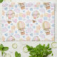 Küchenhandtuch mit niedlichem und skurrilem Muster. Heißluftballons und niedliche Wolken mit Gesichtern zwischen Sternen und Herzen und Ballons. Weiche Pastellfarben bilden dieses bezaubernde Design.