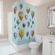 Auf diesem hellblauen Duschvorhang fliegen mehrere Heißluftballons.