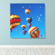 Farbenfrohe schwimmende Heißluftballons, die im blauen Himmel schweben.