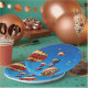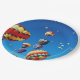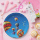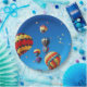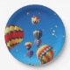 Farbenfrohe schwimmende Heißluftballons, die im blauen Himmel schweben.