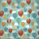 Dieser gemusterte Stoff zeigt meine angestrichenen Illustrationen von Heißluftballons und weißen Wolken gegen einen weichen blauen Himmel. Blasen in Rot, Gelb, Grün, Blau und Orange illustrieren dieses Material.