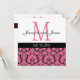 Heißrosa Damask Monogramm Hochzeitsempfehlung 4 Einladung