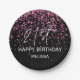 Heissrosa Glitzer Schwarz 21. Geburtstag Pappteller