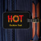 Heiß mit dem Buchstaben O aus einem Flammenkreis mit Chili-Paprikaschoten.