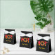 Heiß mit dem Buchstaben O aus einem Flammenkreis mit Chili-Paprikaschoten.