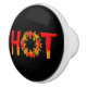 Heiß mit dem Buchstaben O aus einem Flammenkreis mit Chili-Paprikaschoten.
