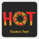 Heiß mit dem Buchstaben O aus einem Flammenkreis mit Chili-Paprikaschoten.