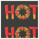 Heiß mit dem Buchstaben O aus einem Flammenkreis mit Chili-Paprikaschoten.
