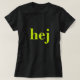 The word Hej in green letters. Hej is the Swedish word for Hello.
