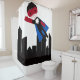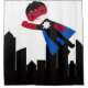 Held-Junge in der Stadt mit Wolkenkratzern Duschvorhang