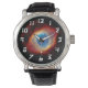 Uhr, Klassische Damenuhr mit schwarzen Lederarmband
