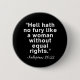 Pinback-Taste mit sarkastischem Zitat protestiert gegen den Umsturz von Roe v. Wade. "Hölle hat keine Wut wie eine Frau ohne gleiche Rechte." - Fallopians 20:22 Weißer Text auf schwarzem Hintergrund