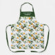 Die lebendige und sommerliche Schürze zeichnet sich durch ein Allover-Muster aus Zitrusorange-Blüten und Blätter in sonniger orangefarbener, weißer und grüner, lebendiger Farbpalette mit eigenem Namen und eigener Küche oder Job-Funktion aus. Ideal zum Grillen im Freien oder zum Mittag- oder Abendessen im Garten.