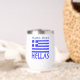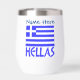 Der Thermalweintumbler zeigt die griechische Flagge und das Wort HELLAS, in blauen Buchstaben, unten. Oben ist ein Platz für einen Namen, in blauen Buchstaben, deins oder für ein Geschenk. Gut geeignet für Wiedersehen, Reisegruppen oder Clubs. Wunderbares Geschenk für Mutter am Muttertag. Behalt dir am Oxi Day auch deine Weinkälte.