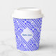 Papier Party Becher mit der blauen und weißen griechischen Flagge und das Wort HELLAS unten in blau, um die Streifen auf der Flagge. Design ist gefliest für künstlerische Wirkung. Ein weißes Fraktal von quadratischen Quadraten hat einen Platz für einen Namen, in blauen Buchstaben, sodass Sie ein personalisierte für Ihre Zusammenkunft erstellen können. Machen Sie Ihr griechisches Wiedersehen oder Reisegruppe Party ganz besonders. Fügt eine schöne Touch zu einem Oxi-Tag-Fest hinzu. Ändern Sie den Schriftart und die Farbe des Namens mit der Funktion "Editieren".