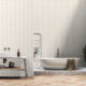 Eine hellbeige und weiße, zwei Zoll breite Metzgerstreifen Tapete.