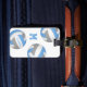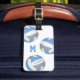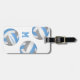 Dieser Beuteltaschen-Anhänger für Volleyball ist einfach mit drei zufällig angeordneten Volleybällen mit hellblauen, grauen und weißen Paneelen - personalisieren Sie den Spielernamen und das Monogramm auf der Vorderseite, Adressdaten auf der Rückseite - von katz_d_zynes