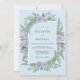 Dieses Design zeigt eine üppige Wasserfarbenanordnung aus Lavendelrosen und lebendigen grünen Farnen vor einem sanften, pulvrigen Blau. Die botanischen Elemente schaffen eine ruhige und romantische Atmosphäre, perfekt für eine Frühlingsveranstaltung im Wald. Die Farbpalette kombiniert kühle Pastelltöne mit reichen, blattgrünen Farben für eine elegante Ästhetik.