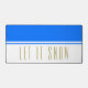 Dieses lustige Urlaubsprojekt besticht durch einen hellen alpinen blauen Oberfarbenblock mit passendem weißen Pinstreifen am unteren Rand vor einem knusprigen, weißen Hintergrund. Der hohe, schlanke Text Zauber aus LET IT SNOW und kann personalisiert sein.
