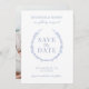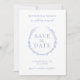 Erleben Sie Eleganz mit dieser raffinierten und zeitgenössischen rustikalen Save the Date Einladung. Dieses elegante Design, das durch einen zarten Kranz aus hellblauen Aquarellblüten verstärkt wird, bietet eine weitere Personalisierung durch das Foto eines Paares auf der Rückseite. Tauchen Sie ein in den zeitlosen Charme dieser einzigartigen und individuell gestaltbaren Einladung.