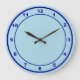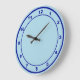 Hellblaues Zifferblatt, dunkelblaue Stundenzahlen, schwarze Handfarbe, runde Form und Acrylmaterial Wanduhr. Wenige Farbkombinationen für diejenigen, die minimales und schlichtes Farbdesign bevorzugen. Uhren, um Ihre Zeit zu Karo und auch Ihre Mauer zu dekorieren. Erhältlich auch für andere Größen und Stile.