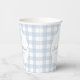 Elegantes Baby Blue Gingham Muster niedlich klassische Osterfeder Baby Duschpapiertassen.