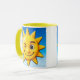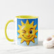 Ein Glücksgefühl für Ihre Kaffeepausen mit diesem fröhlichen Mug, illustriert von einer gelben, lächelnden Sonne, und blinzeln Sie auf einen hellblauen Hintergrund. Sein Schädel und sein hellgelbes Innern fügen eine leuchtende Note hinzu, um den Tag mit Energie zu beginnen. Ein Mug, so warm wie originell.