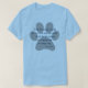 Ein hellblauer T - Shirt mit einem grauen Tatzendruck und das Zitat "Hunde verlassen Tatzendrucke auf unseren Leben und auf unseren Soulen, so einzigartig wie Fingerabdrücke nimmt auf jede Art." Ein großes Geschenk für einen Hundeliebhaber oder ein Haustierelternteil.