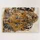 Hellblaue Augen. Auf einer wilden Katze mit orangefarbenen und schwarz-weißen Flecken. Er legt sich auf alle vier Pfoten. Schaut euch an. Mit seinen Augen weit offen. Zu diesem coolen Rätsel