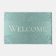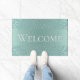 Hellblaue grüne Musiknoten-willkommene Matten-Fußmatte. Ein Blätternblumenmuster der musikalischen Anmerkungen und der Clefs im silbernen Aqua auf einer hellblauen grünen grauen Steigung. Elegant, bereiten themed Dekor der Musik vor, um zu mischen und Match für Ihr Zuhause, Studio oder spezielles Ereignis. Ändern Sie den Text zu allem, das Sie wollen, oder verlassen Sie ihn, wie ist, ein einfaches Willkommen. Wenn Sie es zu mehr als ein Wort oder zwei ändern, müssen möglicherweise Sie den besonders anfertigen Knopf anklicken und den Text passen kleiner lassen. Zu tun ist einfach. Ein wunderbares Housewarminggeschenk für Ihren Lieblingsmusiker oder Musikfreund.