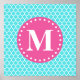 Hellblauer marokkanischer Gitter rosa Monogramm Poster
