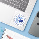Dieser Volleyball-Vinyl-Aufkleber zeigt das realistische Bild eines hellblauen und dunkelblauen und weißen Volleyballs, umgeben von der Phrase "Der Volleyballplatz ist mein glücklicher Ort" und zwei Konturen im lässigen, handgeschriebenen Stil, blaue Schrift - personalisieren Sie den Namen und die Trikotnummer des Athleten - von katz_d_zynes