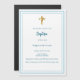 Weißer Hintergrund mit hellblauen Rahmen und goldenem Kreuz Persönlich gestalten und Details hinzufügen. Weißer Text.