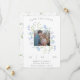 Eine hübsche Blumenhochzeit bewahrt die Terminankündigung für Ihre kommende Frühjahrshochzeit, mit Ihrem Lieblings-Verlobung-Shooting Foto in einem quadratischen Rahmen von hellblauen Aquarellfarben-Wildblumen und grünen Blätter. Personalisieren Sie Ihre Daten in Grau.