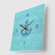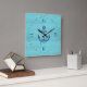 Hellblaues Holz und marineblau-nautischer Anker Quadratische Wanduhr